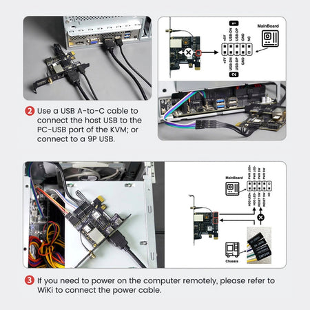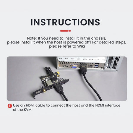 NanoKVM PCle fügt dem NanoKVM Cube optionale WiFi- und POE-Funktionen hinzu; es verfügt über einen eigenen PCle-Steckplatz und kann über den PCle-Steckplatz des Motherboards mit Strom versorgt werden; außerdem ist die kabelgebundene Verbindung (ETH) stabiler und kann professionellere Anforderungen erfüllen.