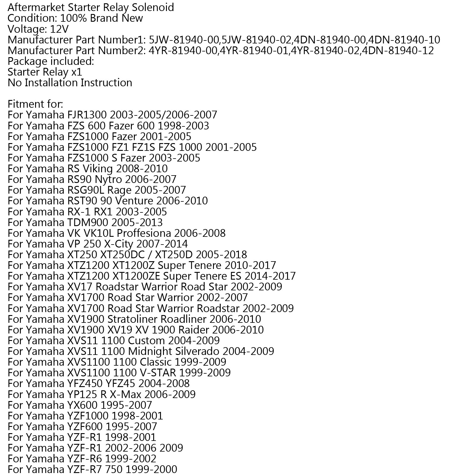 NEW Starter Relay Solenoid 12v For Yamaha ATV YFZ450 2004-2009 XV1900 Road/Stratoliner 2006-2014 XV1900 Raider 2008-2017