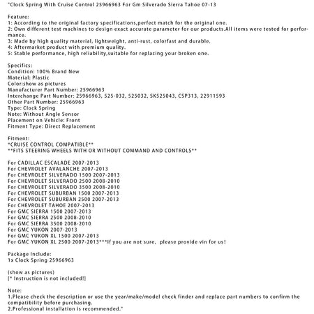 Lenkrad-Uhrfeder 25966963 Für GM SILVERADO SIERRA TAHOE 07-13