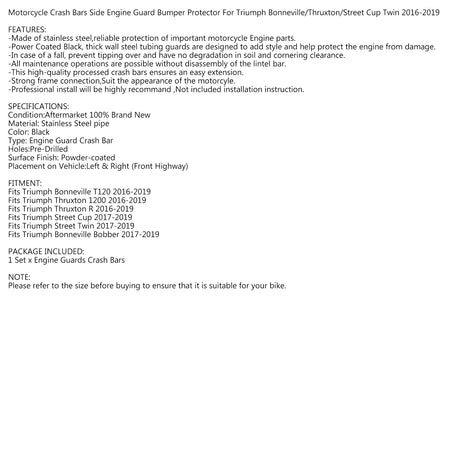 Motorrad Sturzbügel Seite Motorschutz Ladekantenschutz für Triumph Bonneville / Thruxton / Street Cup Twin 2016-2019