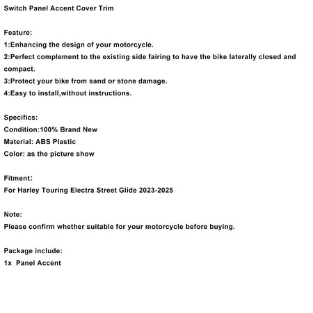 Zierblende für Schalterpanel, passend für Touring Electra Street Glide 2023-2025