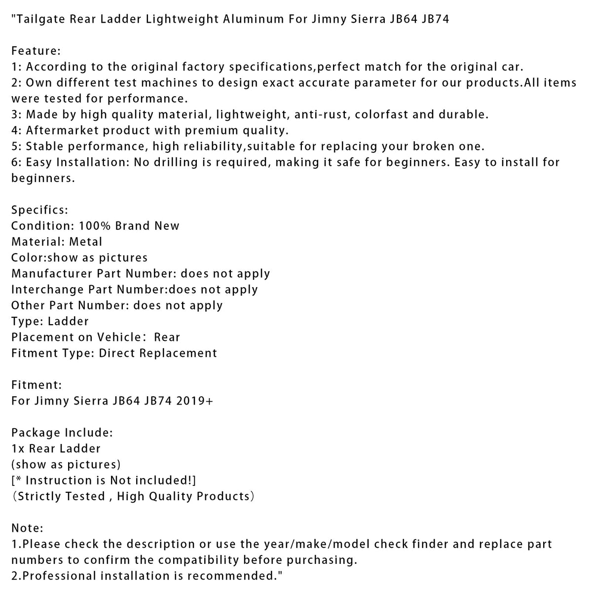 Heckklappenleiter aus leichtem Aluminium, passend für Jimny Sierra JB64 JB74
