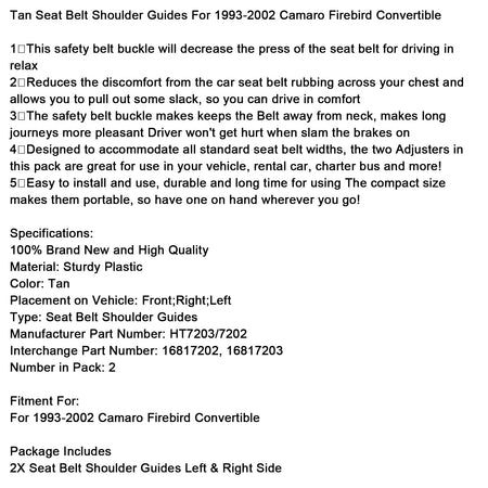 Schultergurtführungen in Beige, passend für Camaro Firebird Cabriolet (Baujahre 1993–2002 )