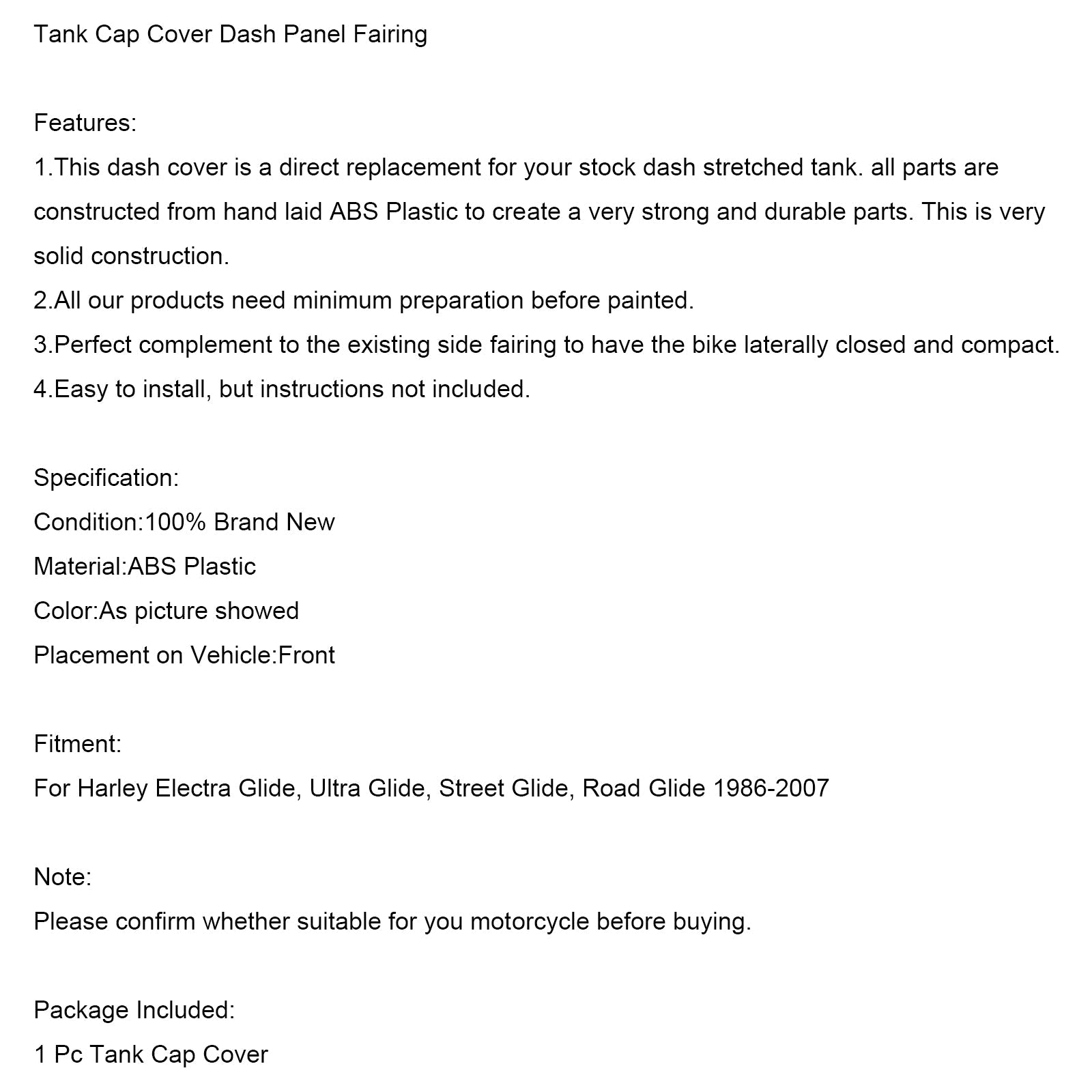 Tankdeckel Abdeckung Panel Verkleidung Fit Für Stra?e Electra Glide FLHT FLHTCU 86-07