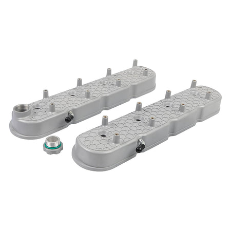 Dieses Ventildeckel-Kit ist kompatibel mit allen LS-Motoren mit LS1-, LS2-, LS3-, LS6-, LS7- oder ähnlichen Zündspulen mit 72 mm Schraubenabstand. Es bietet 0,54 Zoll mehr Innenraum als die serienmäßigen Ventildeckel.
