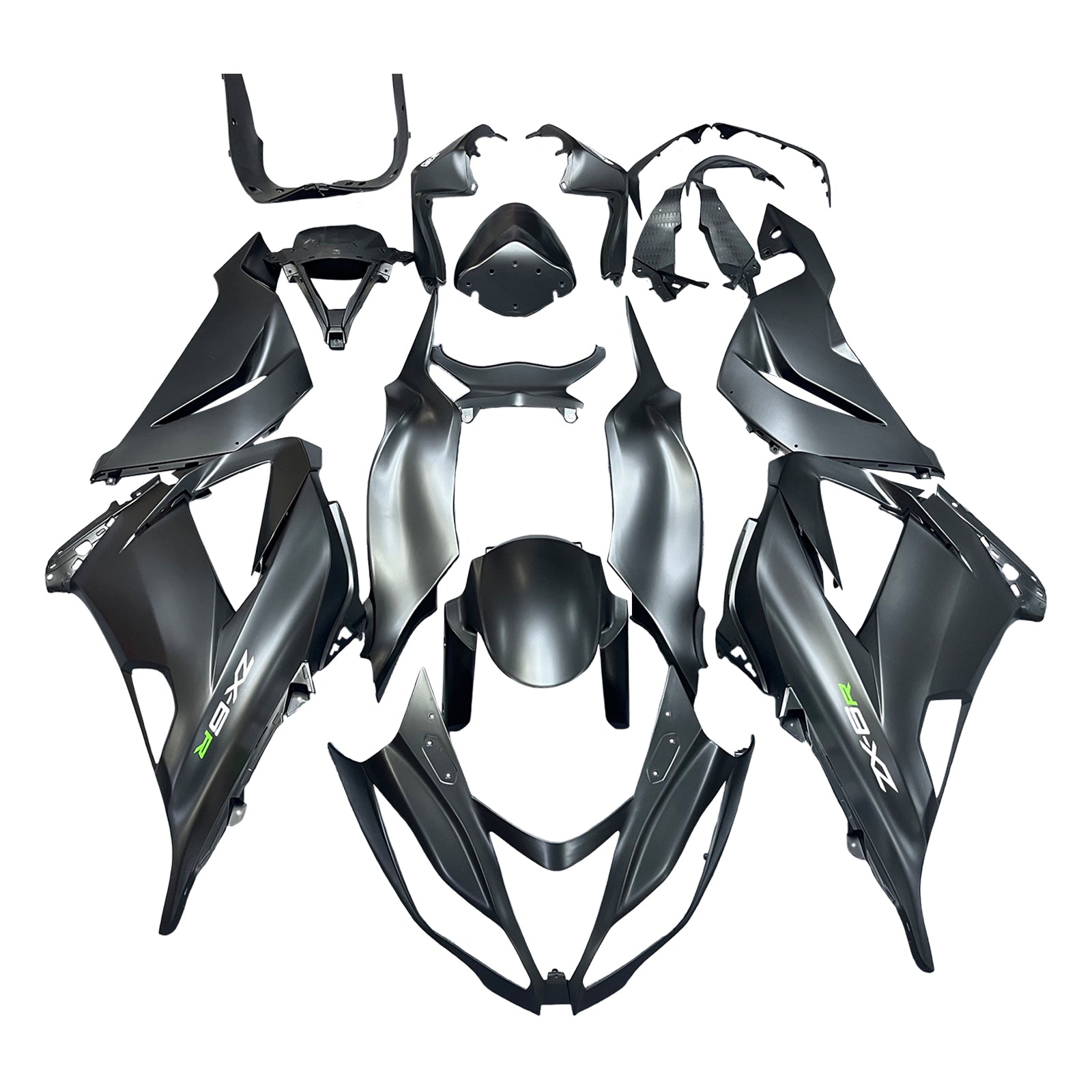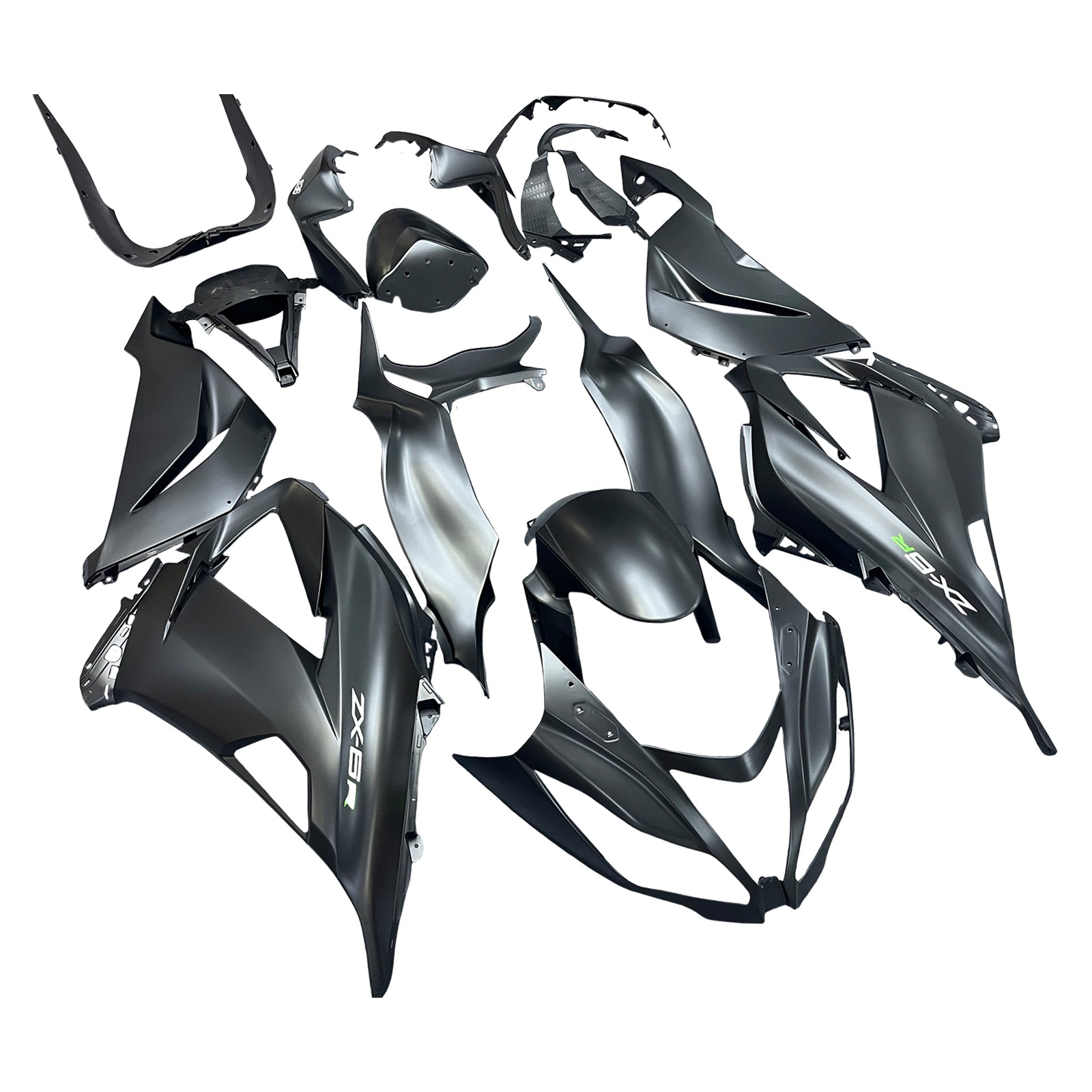 Amotopart Kawasaki ZX6R 13-18 Verkleidung Matt Schwarz mit Bolzeninjektion Kunststoff Kit