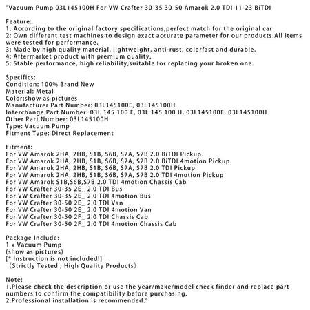 Vakuumpumpe 03L145100H Für VW Crafter 30-35 30-50 Amarok 2.0 TDI 11-23 BiTDI