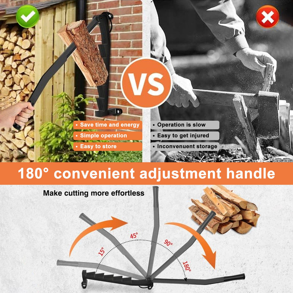 * An der Wand montierter Holzspalter – dieser Holzspalter ist mit einem Hebel-Holzschnitt ausgestattet, sodass Sie Holz mit weniger Kraftaufwand spalten k?nnen. Sie müssen lediglich die Klinge anheben, dann das Holz darauf legen und die Klinge nach unten ziehen. Im Vergleich zu herk?mmlichen Holzspaltwerkzeugen ist der Einsatz von Hilfswerkzeugen wie einer Axt nicht erforderlich.