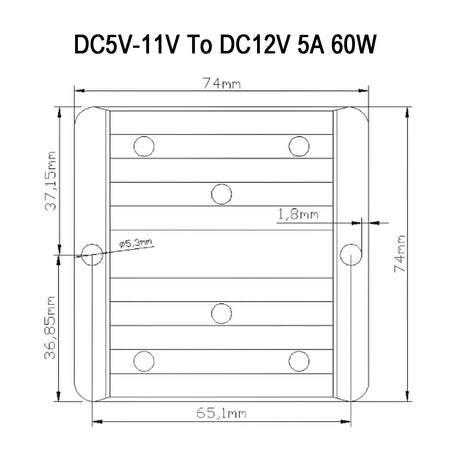 Wasserdichter DC 5V ~ 11V bis 12V 5A Spannungs-Stromversorgungskonverter-Regler