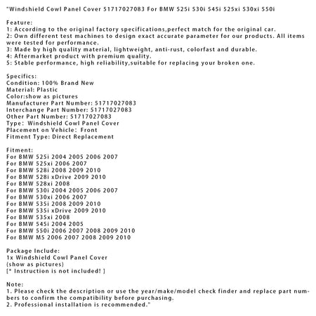 2004-2007 BMW 525i Windschutzscheibenverkleidung, Abdeckung 51717027083