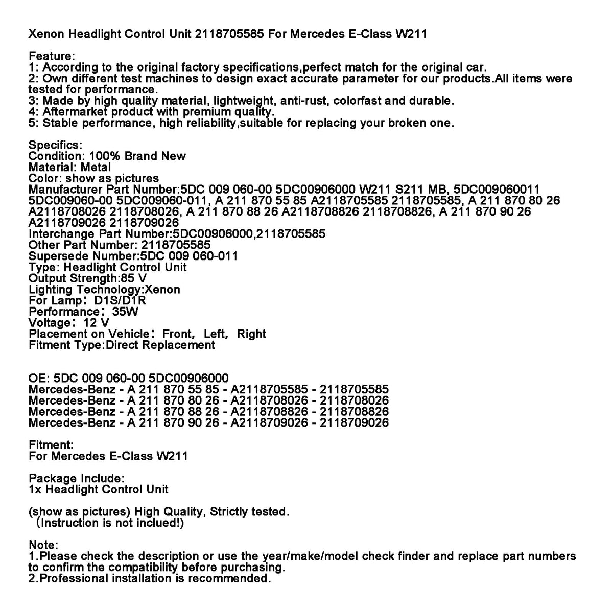 Hersteller-Teilenummer: 5DC 009 060-00 5DC00906000 W211 S211 MB, 5DC009060011 5DC009060-00 5DC009060-011, A 211 870 55 85 A2118705585 2118705585, A 211 87 0 80 26 A2118708026 2118708026, A 211 870 88 26 A2118708826 2118708826, A 211 870 90 26 A2118709026 2118709026