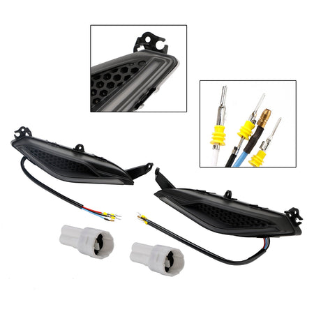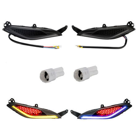 Farbe: Rotes Tagfahrlicht, Blau links und Gelb rechts