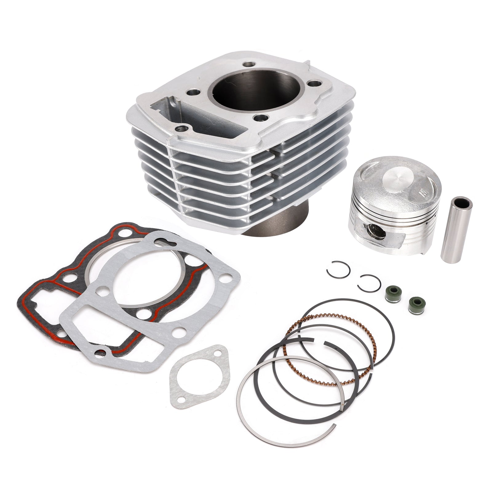 Der Satz enthält Zylinder, Kolben, Kolbenringe, Kolbenbolzen, Kolbenbolzenhalter und Zylinderkopfdichtungssatz (Sie erhalten genau das, was abgebildet ist).